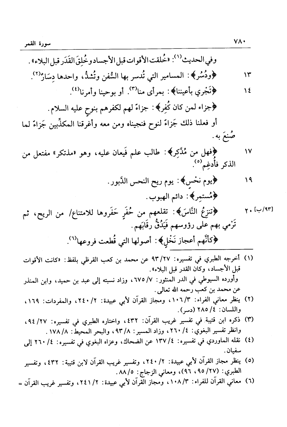 (6) معاني القرآن للفراء: 3/ 108، ومجاز القرآن لأبي عبيدة: 2/ 241، وتفسير غريب القرآن لابن قتيبة: 433، وتفسير الطبري: 27/ 99.