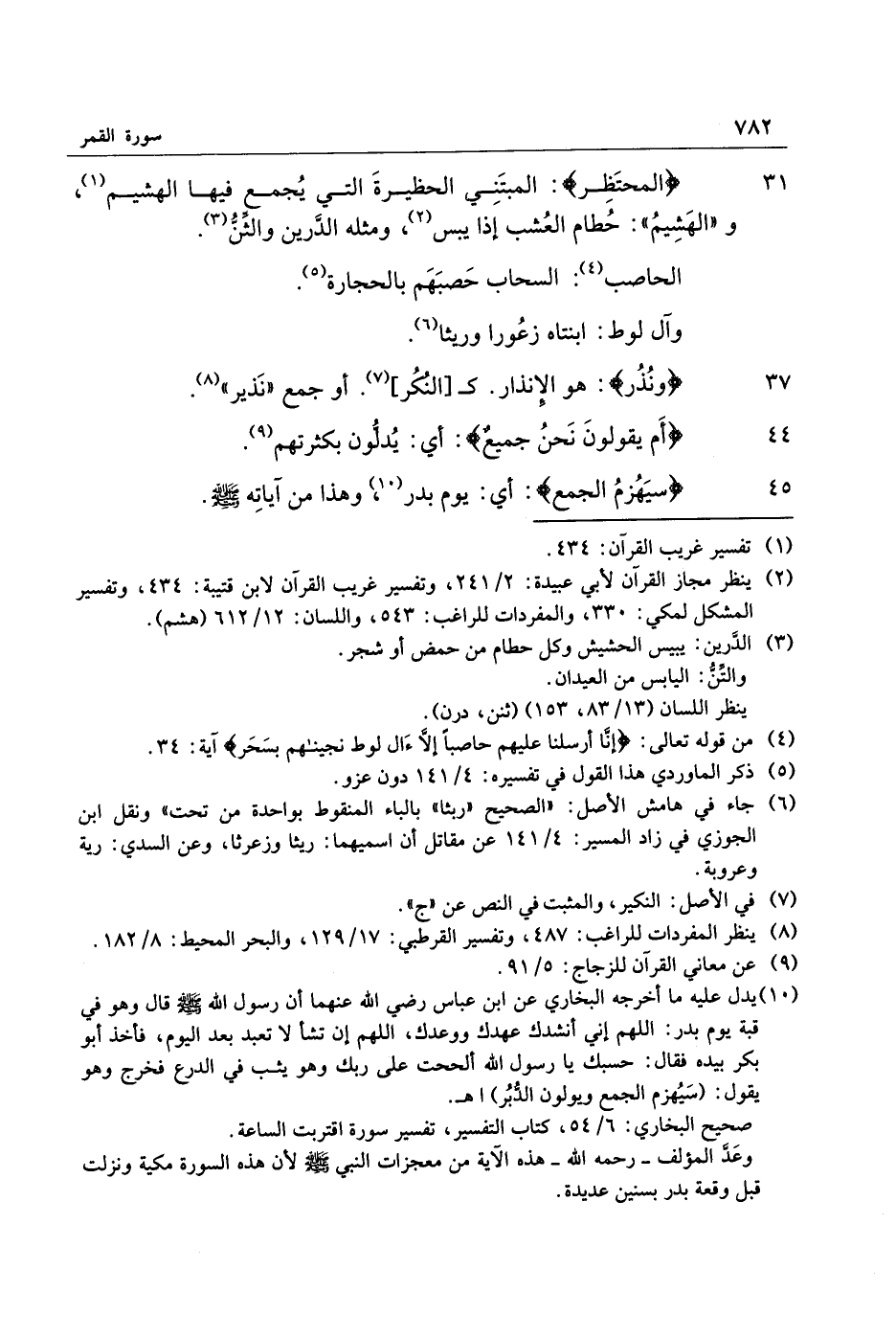 (10) يدل عليه ما أخرجه البخاري عن ابن عباس رضي الله عنهما أن رسول الله صلى الله عليه وسلم قال وهو في قبة يوم بدر: اللهم إني أنشدك عهدك ووعدك، اللهم إن تشأ لا تعبد بعد اليوم، فأخذ أبو بكر بيده فقال: حسبك يا رسول الله ألححت على ربك وهو يثب في الدرع فخرج وهو يقول: (سيهزم الجمع ويولون الدّبر) اه-.