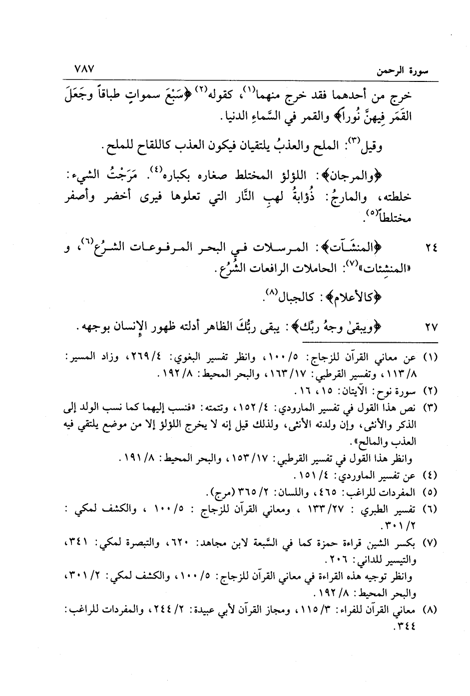 (6) تفسير الطبري: 27/ 133، ومعاني القرآن للزجاج: 5/ 100، والكشف لمكي: