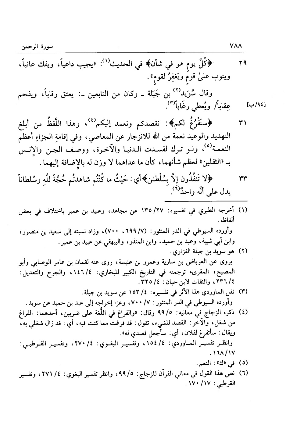 (3) نقل الماوردي هذا الأثر في تفسيره: 4/ 153 عن سويد بن جبلة.