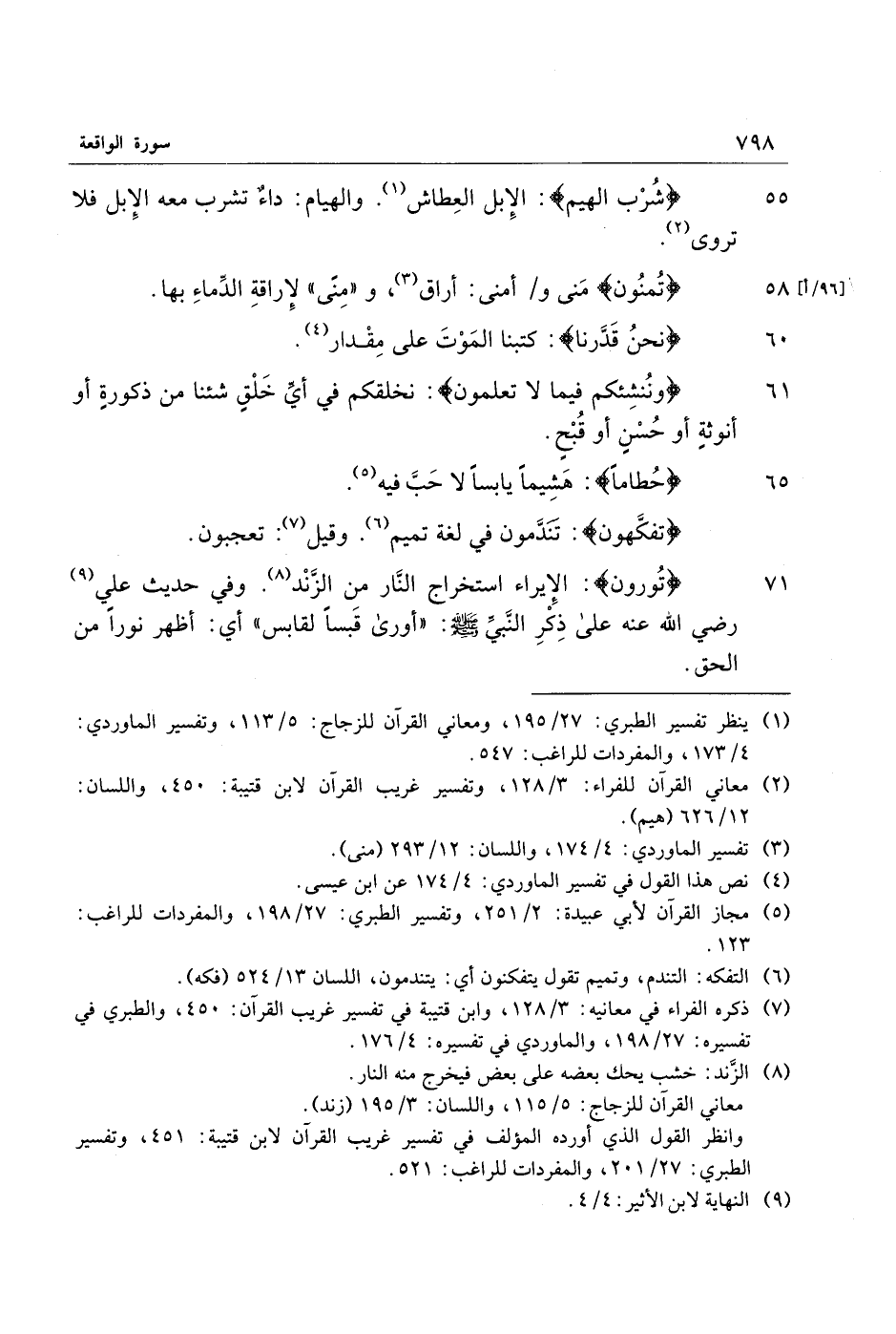 (7) ذكره الفراء في معانيه: 3/ 128، وابن قتيبة في تفسير غريب القرآن: 450، والطبري في تفسيره: 27/ 198، والماوردي في تفسيره: 4/ 176.