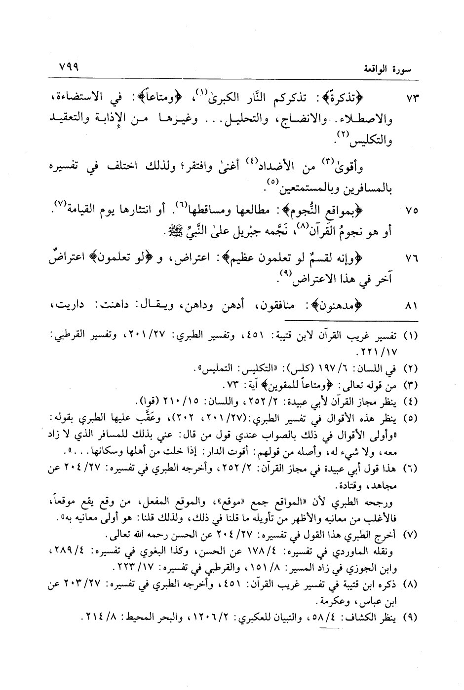 (1) تفسير غريب القرآن لابن قتيبة: 451، وتفسير الطبري: 27/ 201، وتفسير القرطبي: