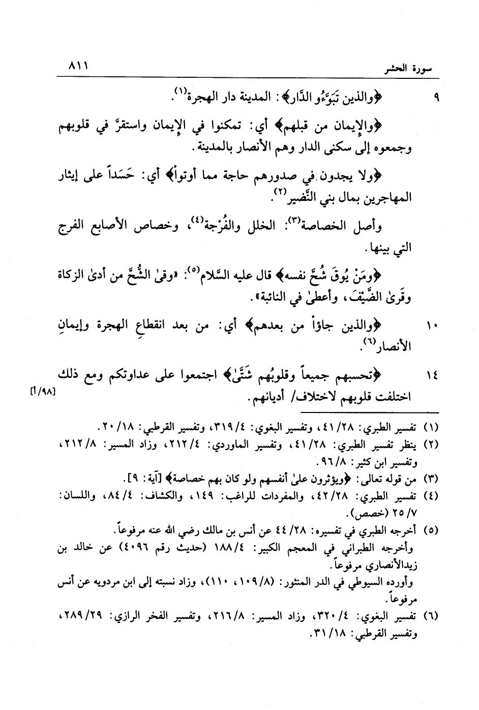 (6) تفسير البغوي: 4/ 320، وزاد المسير: 8/ 216، وتفسير الفخر الرازي: 29/ 289، وتفسير القرطبي: 18/ 31.