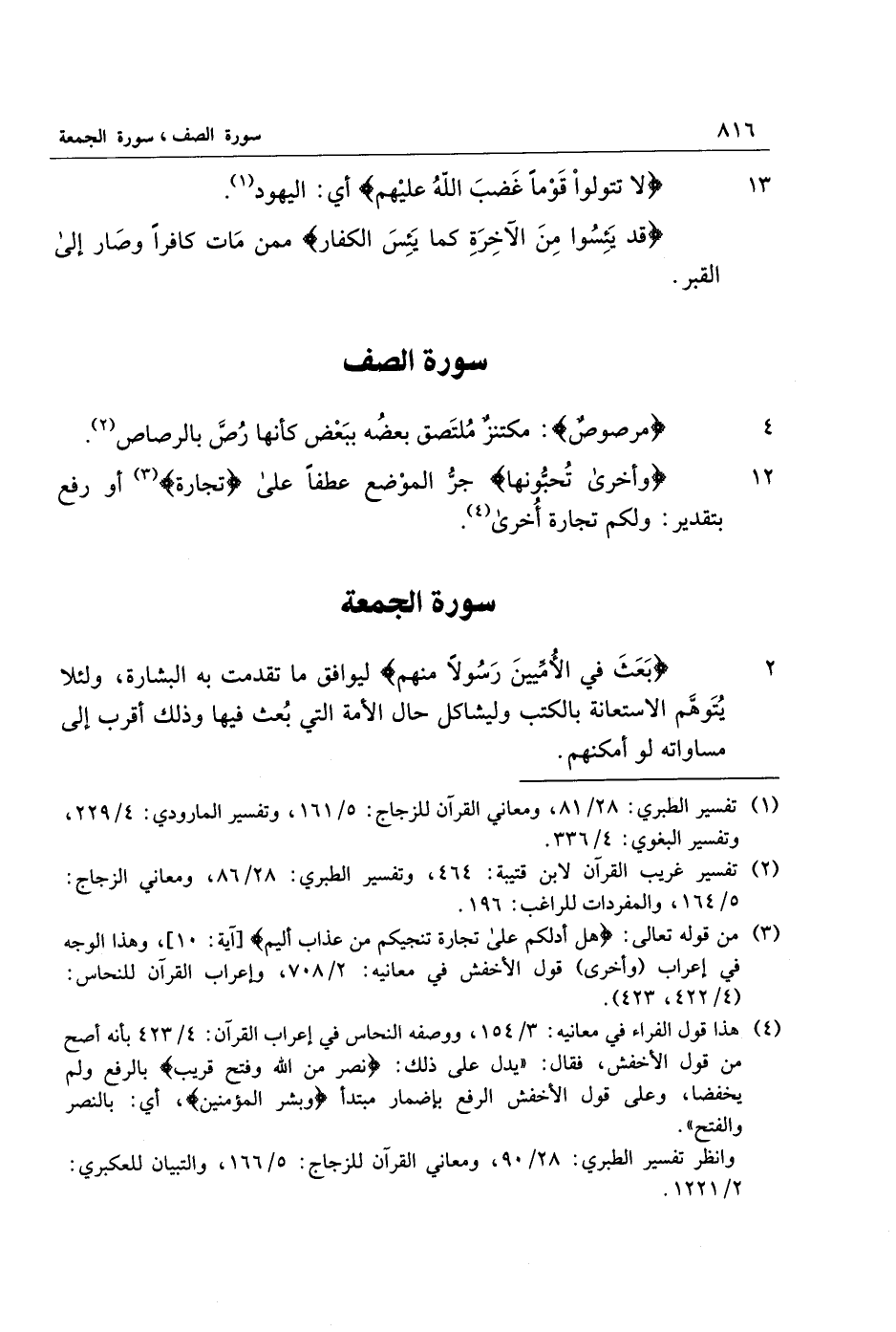 (1) تفسير الطبري: 28/ 81، ومعاني القرآن للزجاج: 5/ 161، وتفسير الماوردي: 4/ 229، وتفسير البغوي: 4/ 336.