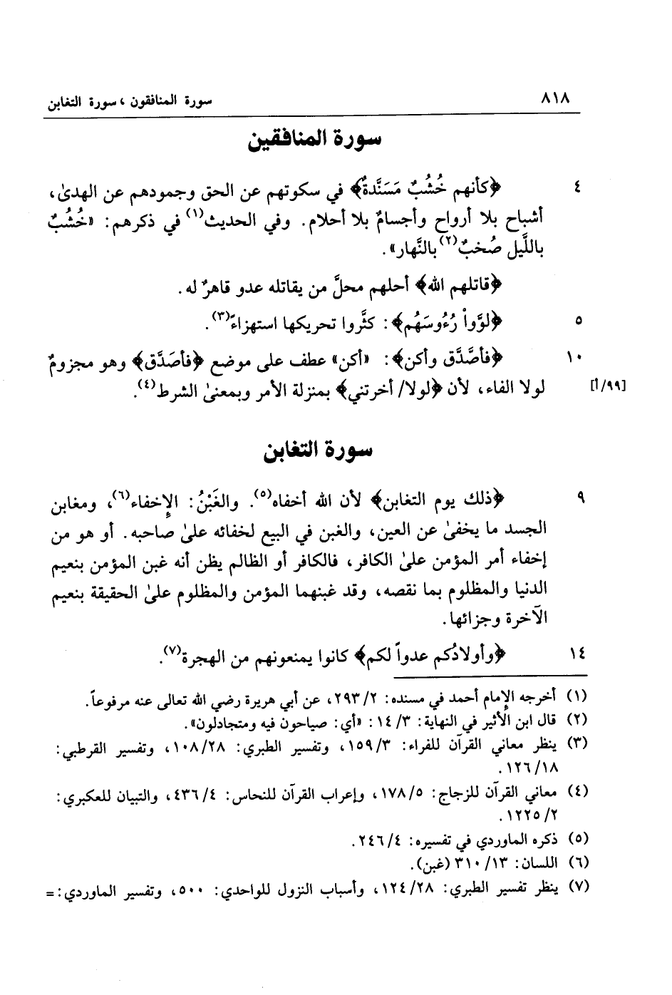 4 كَأَنَّهُمْ خُشُبٌ مُسَنَّدَةٌ في سكوتهم عن الحق وجمودهم عن الهدى، أشباح بلا أرواح وأجسام بلا أحلام. وفي الحديث «1» في ذكرهم: «خشب باللّيل صخب «2» بالنّهار» .