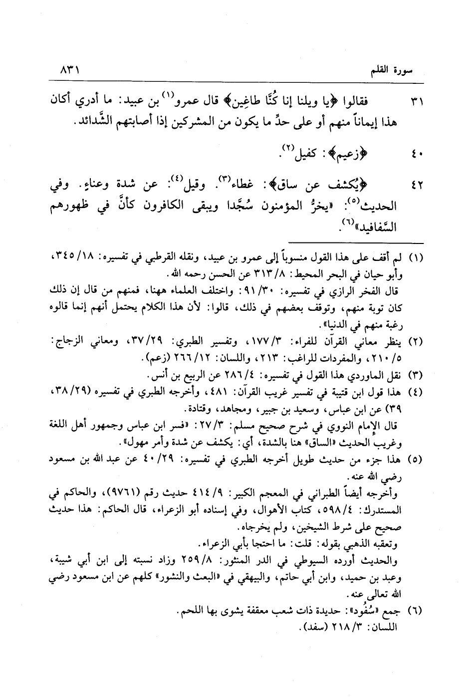 (5) هذا جزء من حديث طويل أخرجه الطبري في تفسيره: 29/ 40 عن عبد الله بن مسعود رضي الله عنه.