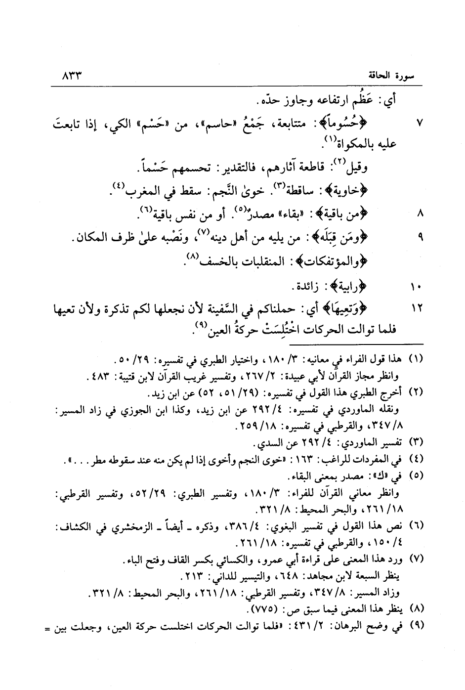 وانظر معاني القرآن للفراء: 3/ 180، وتفسير الطبري: 29/ 52، وتفسير القرطبي:
