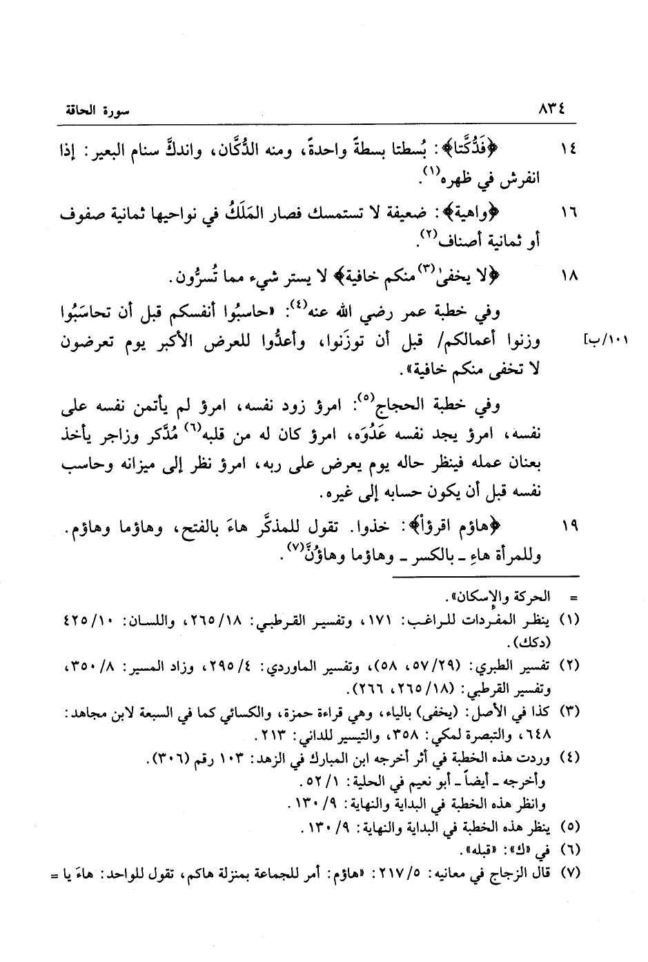 19 هاؤُمُ اقْرَؤُا: خذوا. تقول للمذكّر هاء بالفتح، وهاؤما وهاؤم.