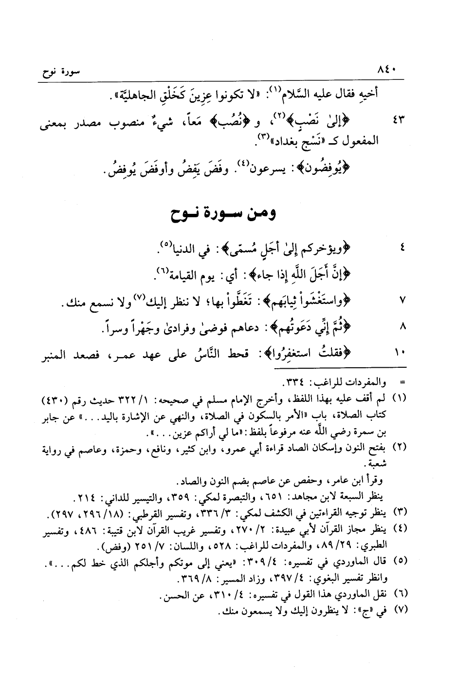 43 إِلى نُصُبٍ «2» ، ونصب معا، شيء منصوب مصدر بمعنى المفعول ك «نسج بغداد» «3» .