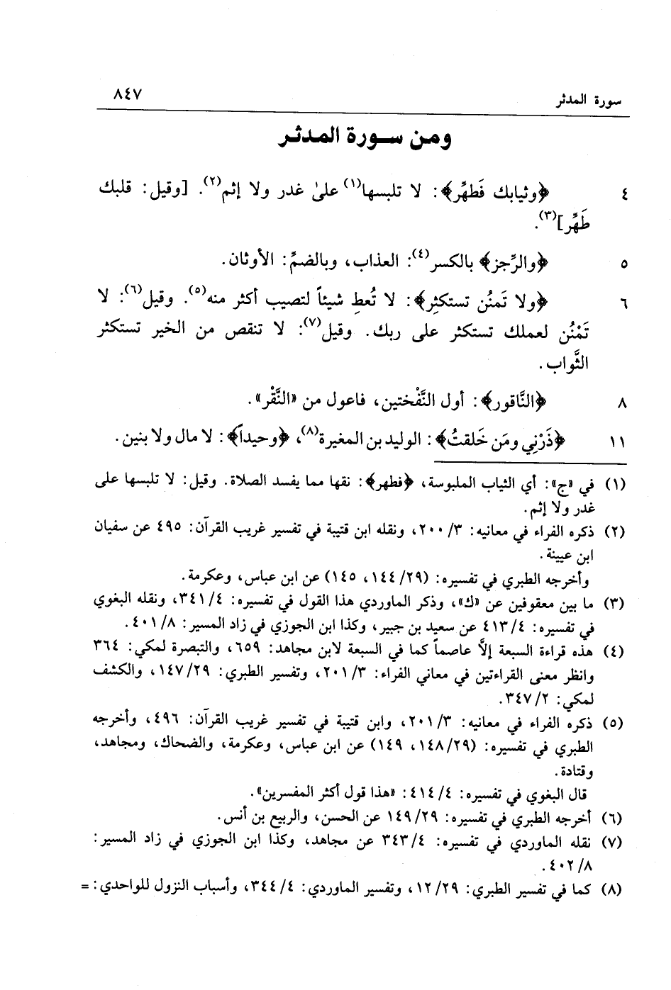 (5) ذكره الفراء في معانيه: 3/ 201، وابن قتيبة في تفسير غريب القرآن: 496، وأخرجه الطبري في تفسيره: (29/ 148، 149) عن ابن عباس، وعكرمة، والضحاك، ومجاهد، وقتادة.