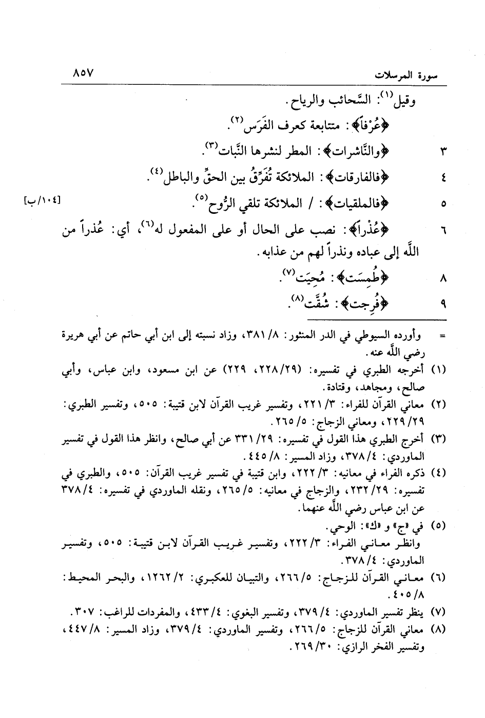 (8) معاني القرآن للزجاج: 5/ 266، وتفسير الماوردي: 4/ 379، وزاد المسير: 8/ 447، وتفسير الفخر الرازي: 30/ 269.