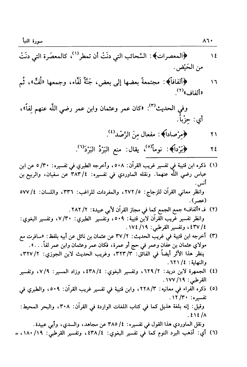 (4) الجمهرة لابن دريد: 2/ 629، وتفسير البغوي: 4/ 438، وزاد المسير: 9/ 7، وتفسير القرطبي: 19/ 177.