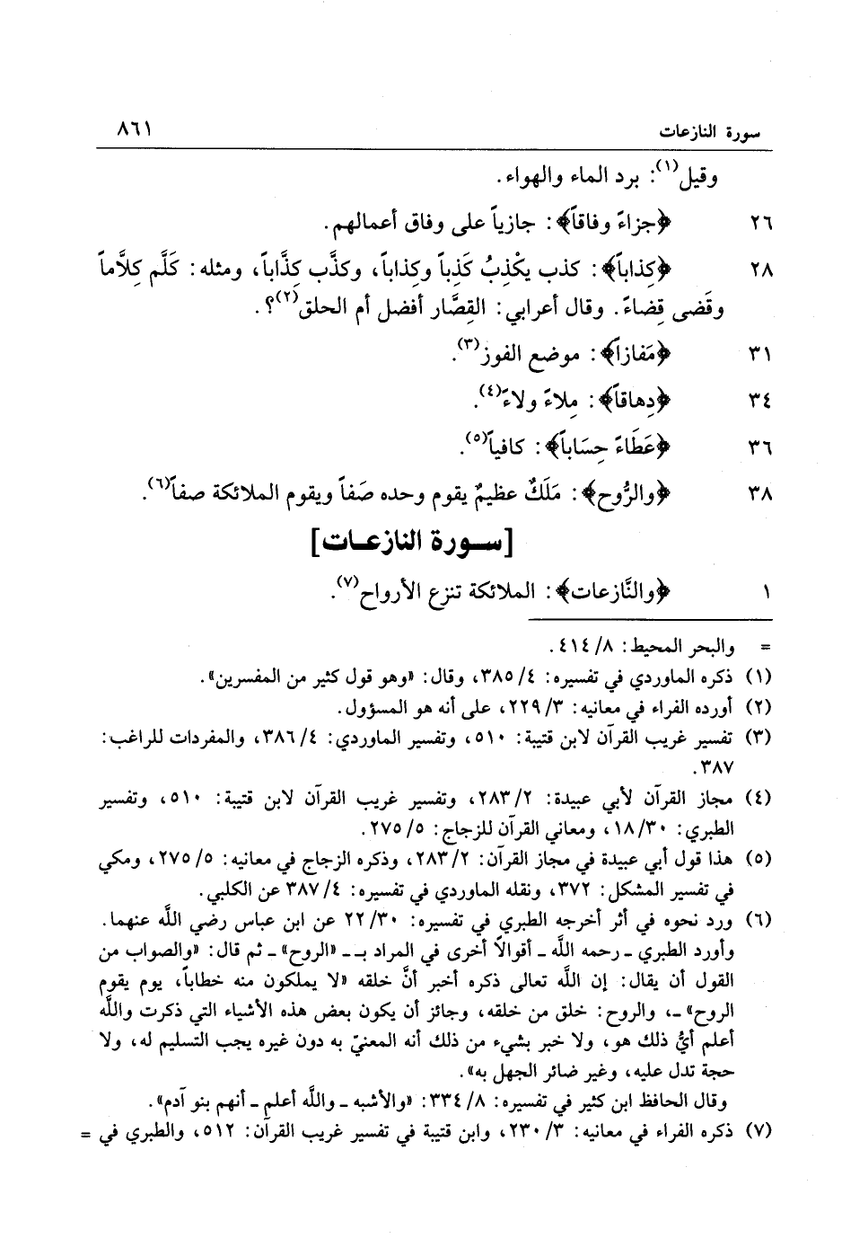 1 وَالنَّازِعاتِ: الملائكة تنزع الأرواح «7» .