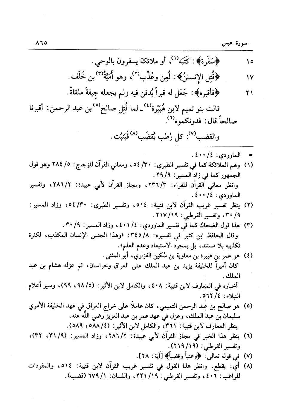 (2) ينظر تفسير غريب القرآن لابن قتيبة: 514، وتفسير الطبري: 30/ 54، وزاد المسير: