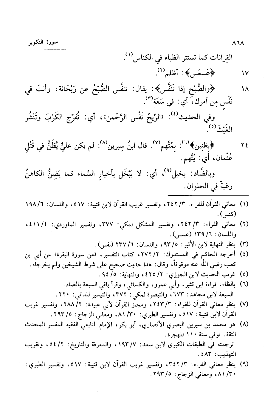 (8) هو محمد بن سيرين البصري الأنصاري، أبو بكر، الإمام التابعي الفقيه المفسر المحدث الثقة. توفي سنة 110 للهجرة.