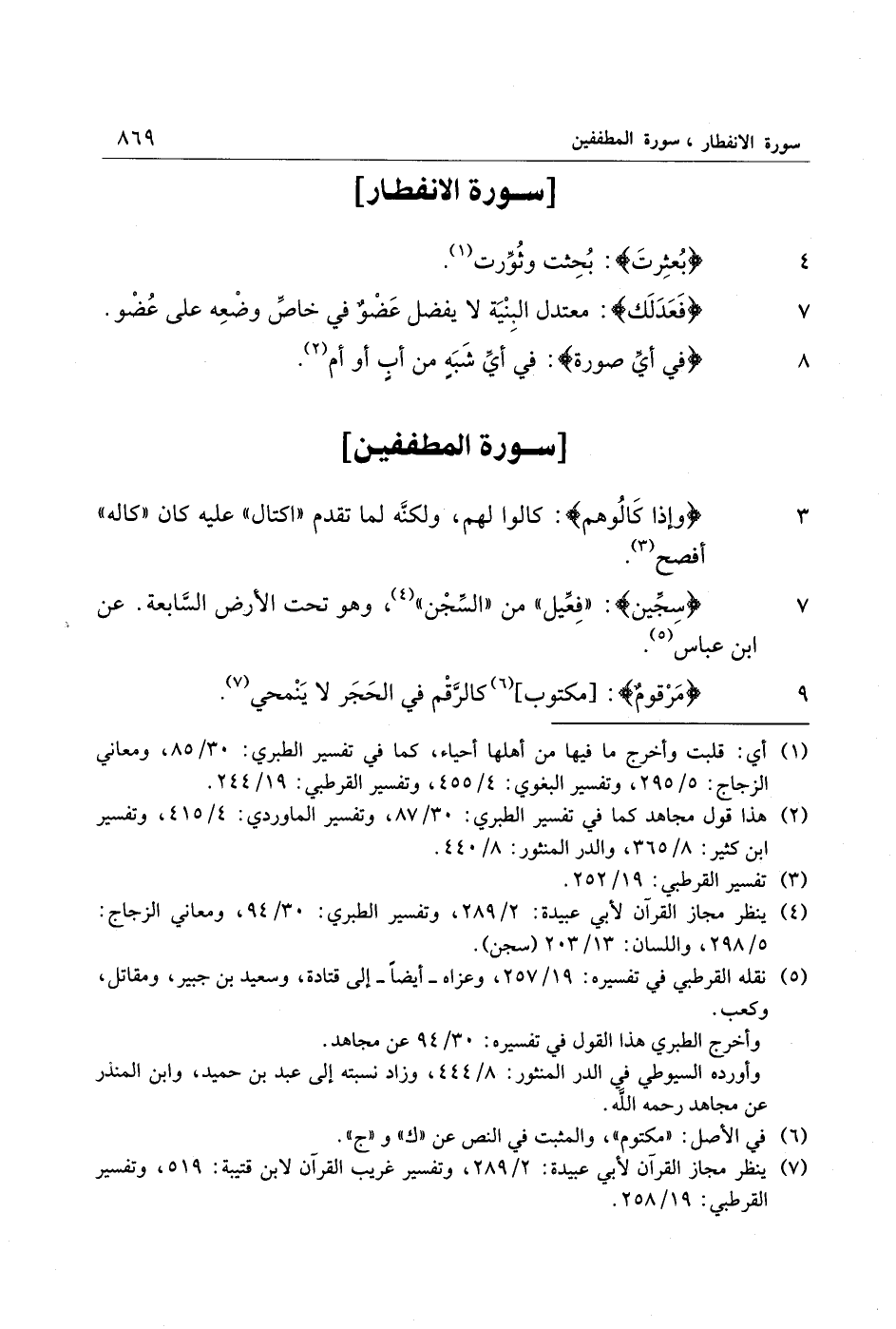 (2) هذا قول مجاهد كما في تفسير الطبري: 30/ 87، وتفسير الماوردي: 4/ 415، وتفسير ابن كثير: 8/ 365، والدر المنثور: 8/ 440.