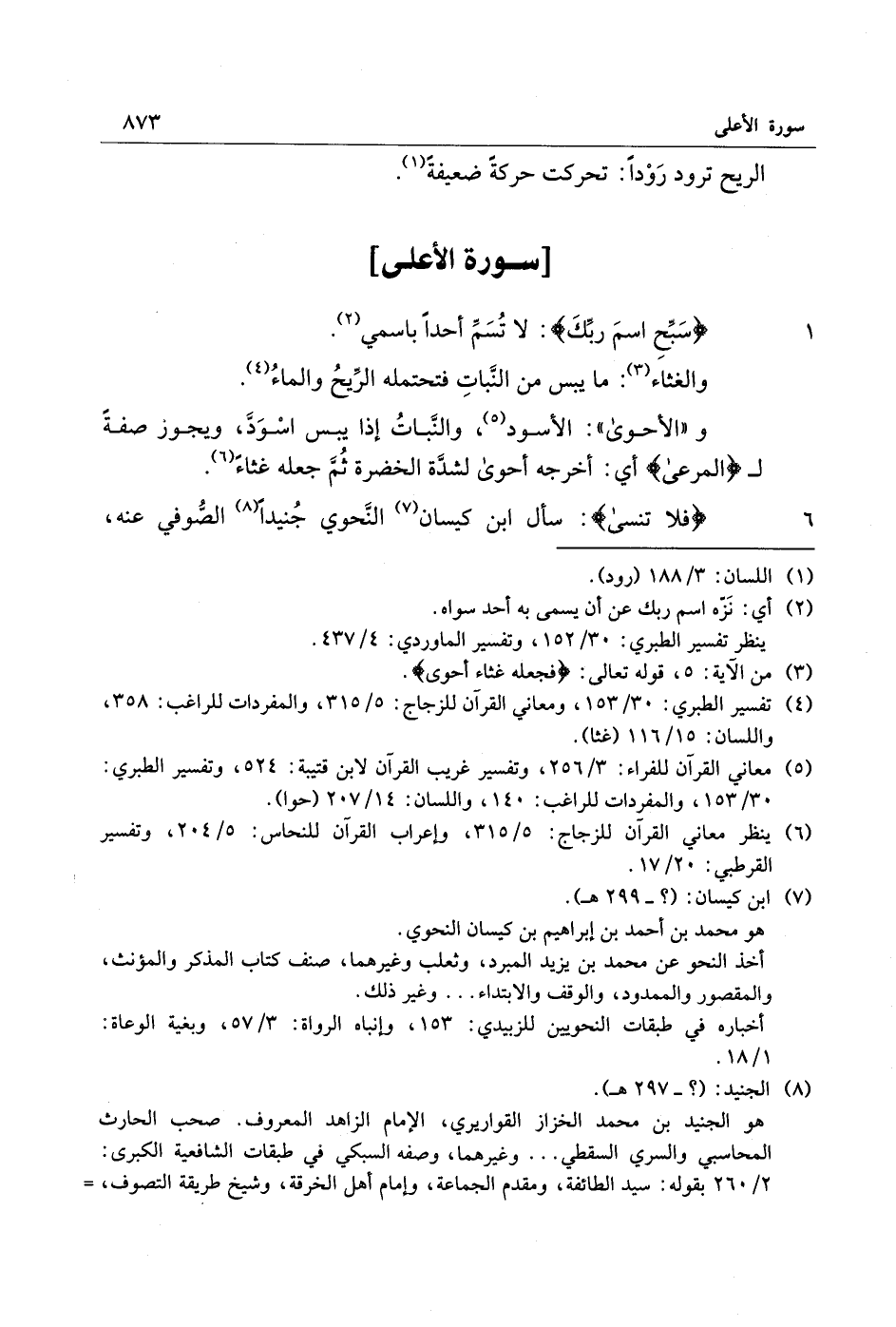6 فَلا تَنْسى: سأل ابن كيسان «7» النّحوي جنيدا «8» الصّوفي عنه،
