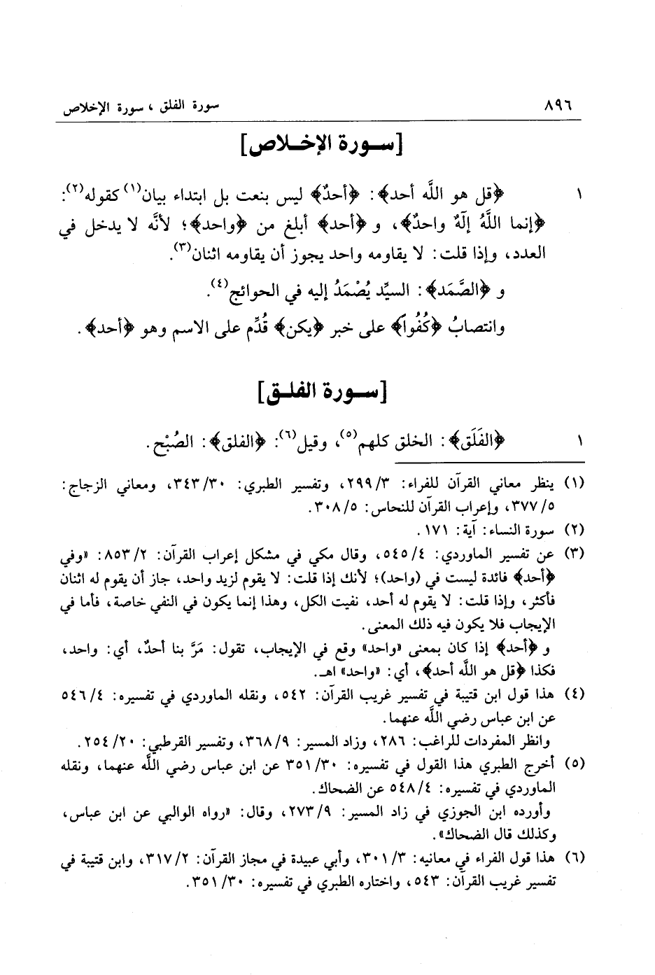 (3) عن تفسير الماوردي: 4/ 545، وقال مكي في مشكل إعراب القرآن: 2/ 853: «وفي أَحَدٌ فائدة ليست في (واحد) لأنك إذا قلت: لا يقوم لزيد واحد، جاز أن يقوم له اثنان فأكثر، وإذا قلت: لا يقوم له أحد، نفيت الكل، وهذا إنما يكون في النفي خاصة، فأما في الإيجاب فلا يكون فيه ذلك المعنى.