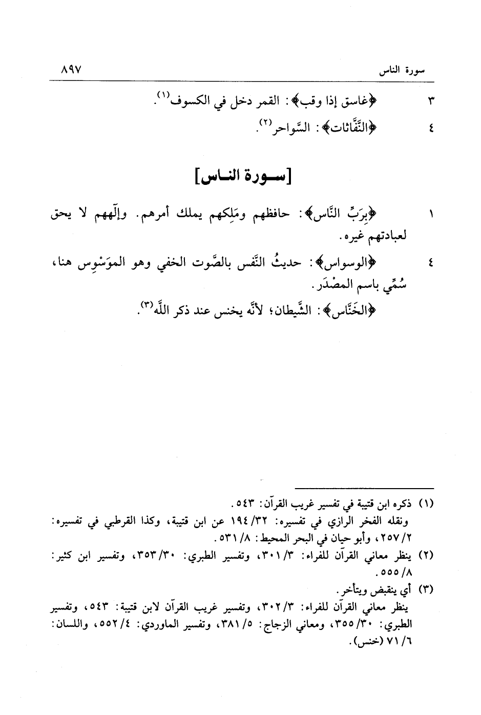 (1) ذكره ابن قتيبة في تفسير غريب القرآن: 543.