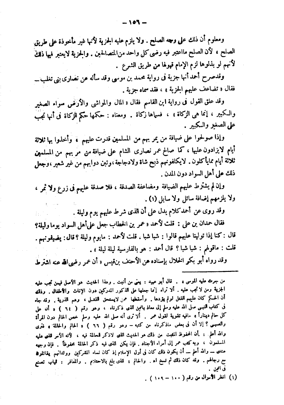 ومعلوم أن ذلك على وجه الصلح. ولا يلزم عليه الجزية لأنها غير مأخوذة على طريق الصلح، لأن الصلح ما اعتبر فيه رضى كل واحد من المتصالحين. والجزية لا يعتبر فيها ذلك لأنهم لو بذلوها لزم الإمام قبولها من طريق الشرع. وقد صرح أحمد أنها جزية في رواية محمد بن موسى وقد سأله عن نصارى بني تغلب، فقال: " تضاغف عليهم الجزية" فقد سماه جزية. وقد علق القول في رواية ابن القاسم فقال " المال والمواشي والأرض سواء الصغير والكبير، إنما هي الزكاة". فسماها زكاة، ومعناه: حكمها حكم الزكاة في أنها تجب على الصغير والكبير.