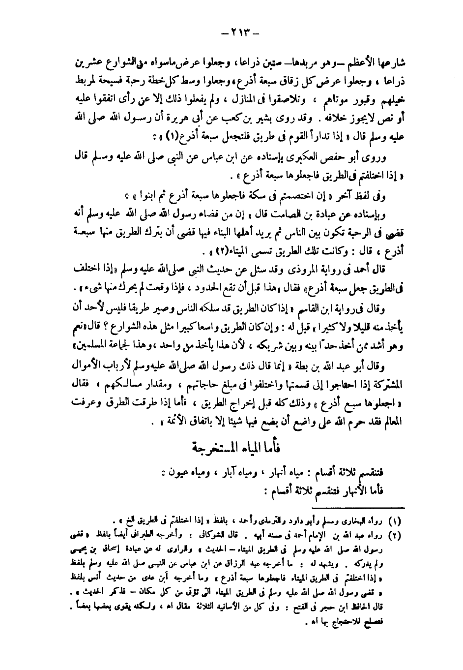 فأما الْمِيَاهُ الْمُسْتَخْرَجَةُ فَتَنْقَسِمُ ثَلَاثَةَ أَقْسَامٍ: مِيَاهُ أَنْهَارٍ، وَمِيَاهُ آبَارٍ، وَمِيَاهُ عُيُونٍ فَأَمَّا الْأَنْهَارُ فَتَنْقَسِمُ ثلاثة أقسام: