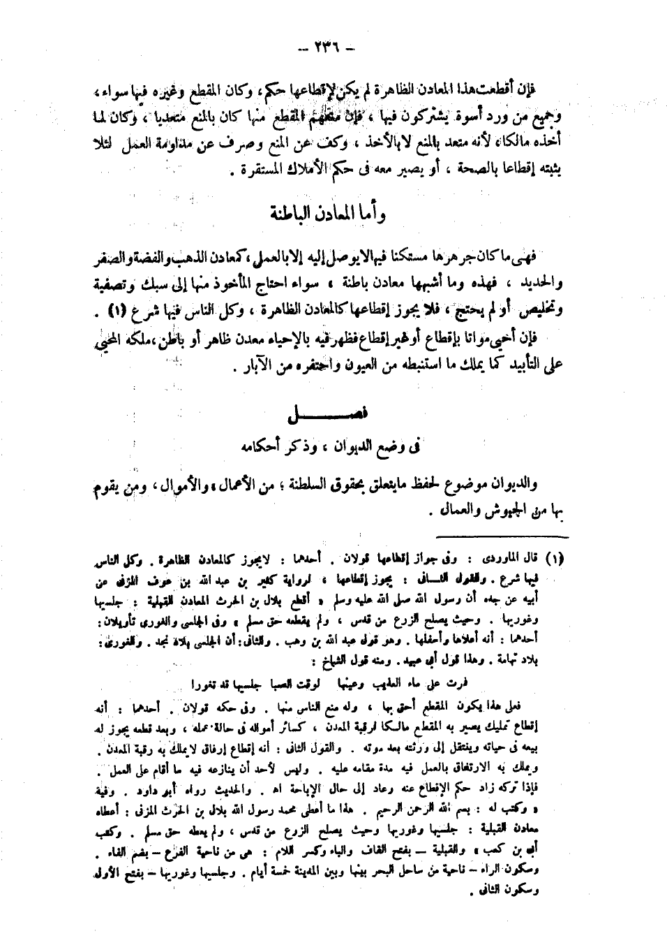 والديوان موضوع لِحِفْظِ مَا يَتَعَلَّقُ بِحُقُوقِ السَّلْطَنَةِ، مِنْ الْأَعْمَالِ وَالْأَمْوَالِ، وَمَنْ يَقُومُ بِهَا مِنْ الْجُيُوشِ وَالْعُمَّالِ.