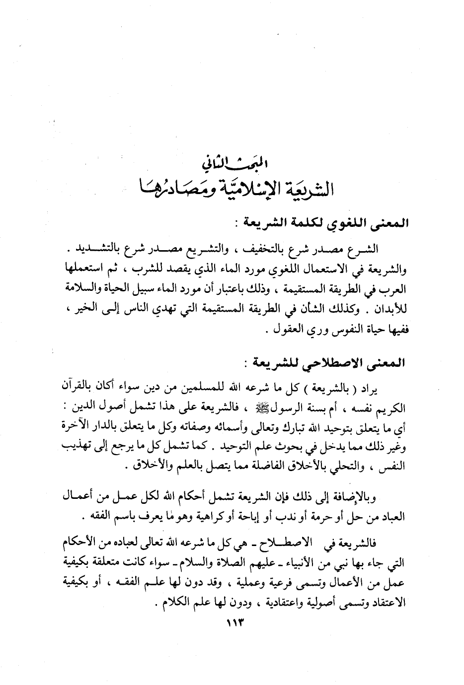 المبحث الثاني: الشريعة الإسلامية ومصادرها