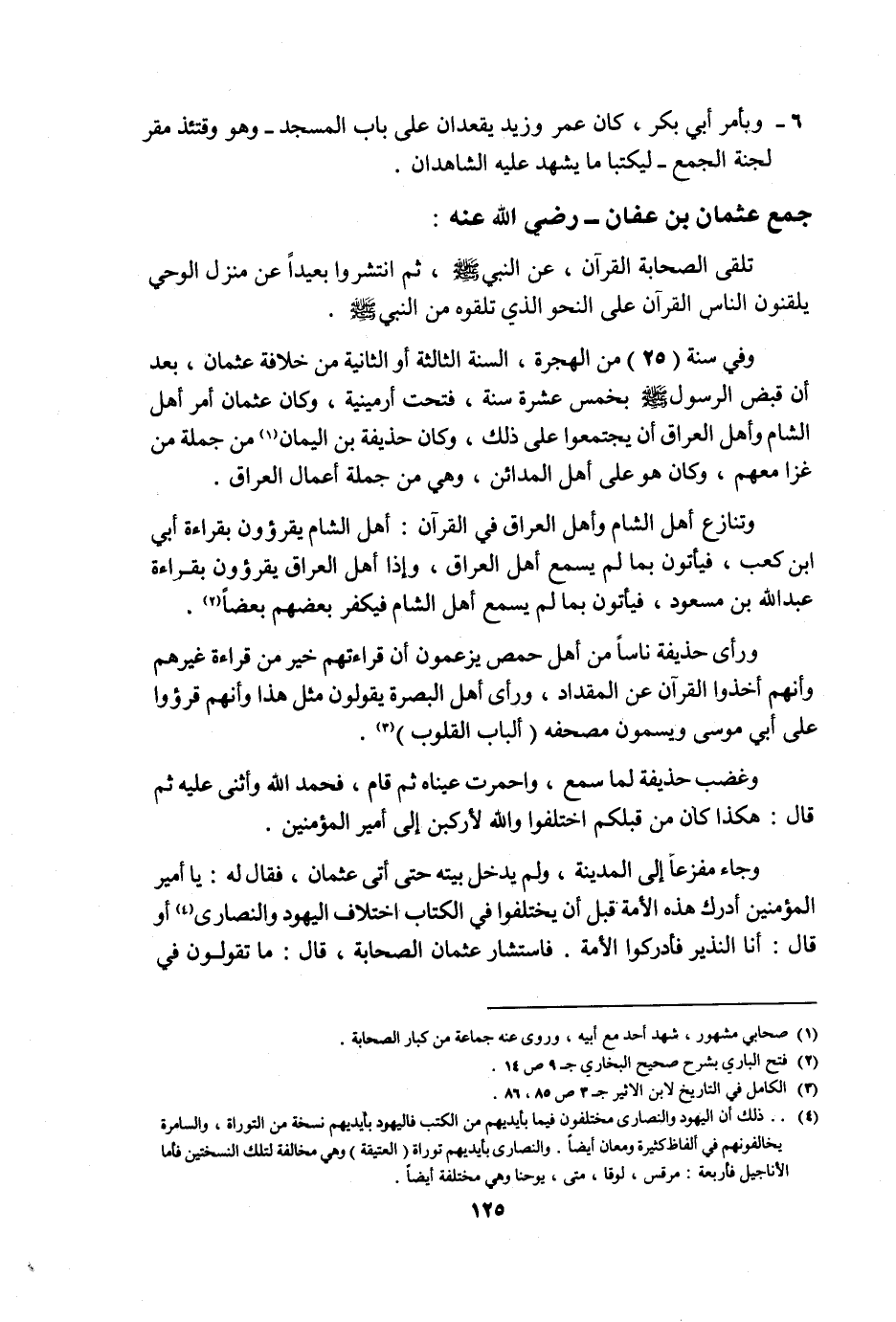 6- وبأمر أبي بكر، كان عمر وزيد يقعدان على باب المسجد -وهو وقتئذ مقر لجنة الجمع- ليكتبا ما يشهد عليه الشاهدان.