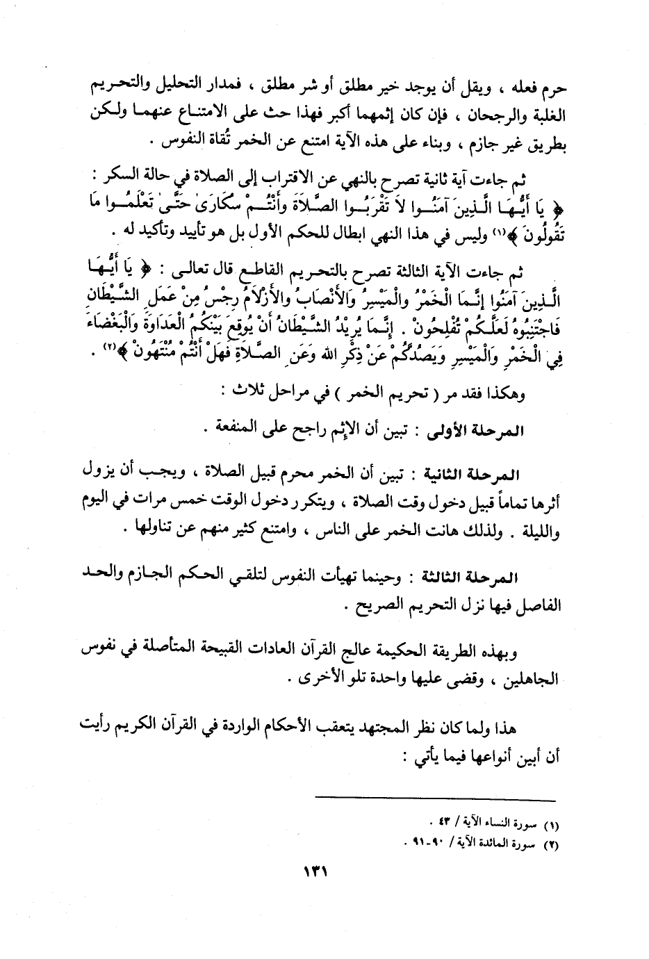 وهكذا فقد مر "تحريم الخمر" في مراحل ثلاث: