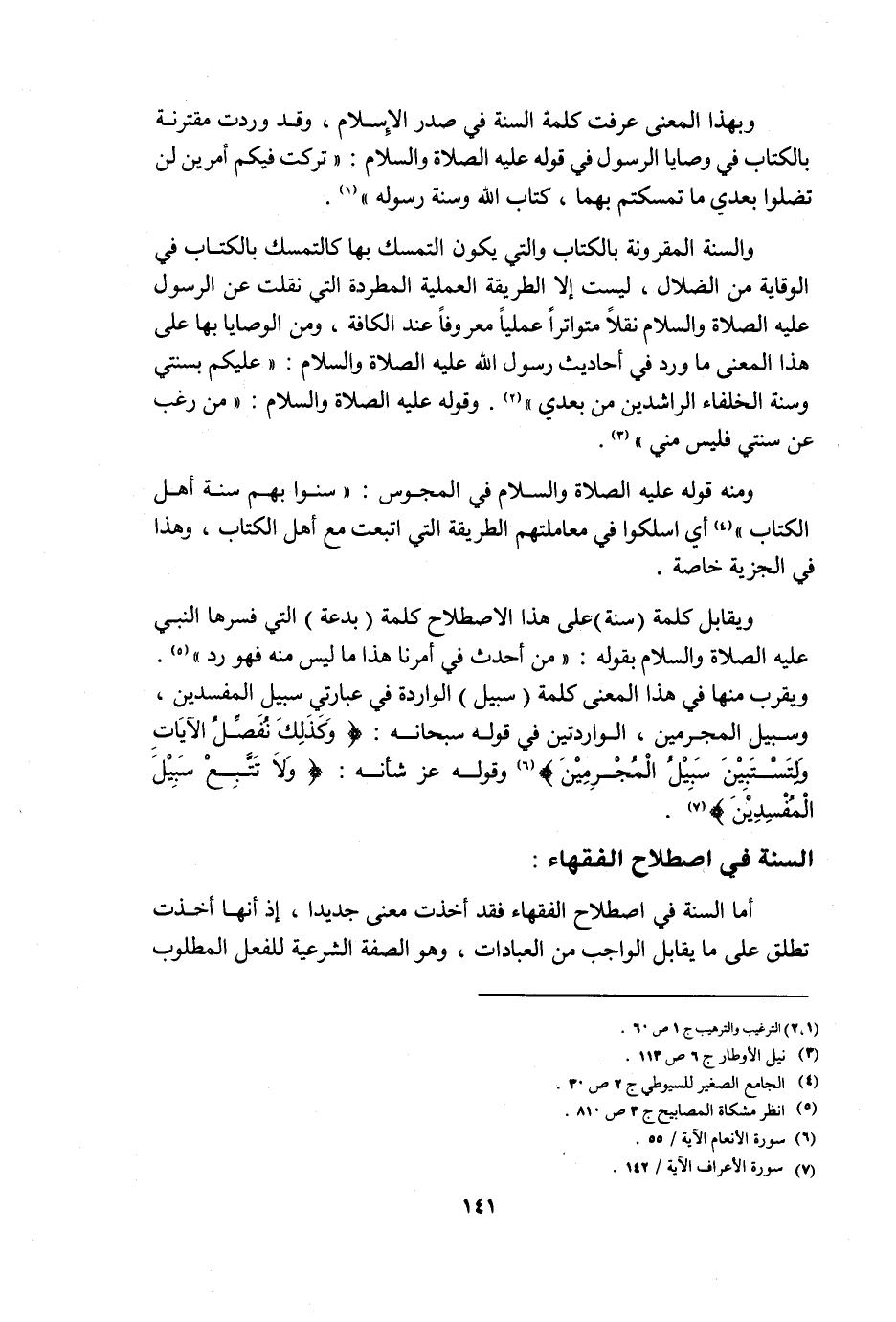 وبهذا المعنى عرفت كلمة السنة في صدر الإسلام، وقد وردت مقترنة بالكتاب في وصايا الرسول في قوله عليه الصلاة والسلام: "تركت فيكم أمرين لن تضلوا بعدي ما تمسكتم بهما، كتاب الله وسنة رسوله" 1.