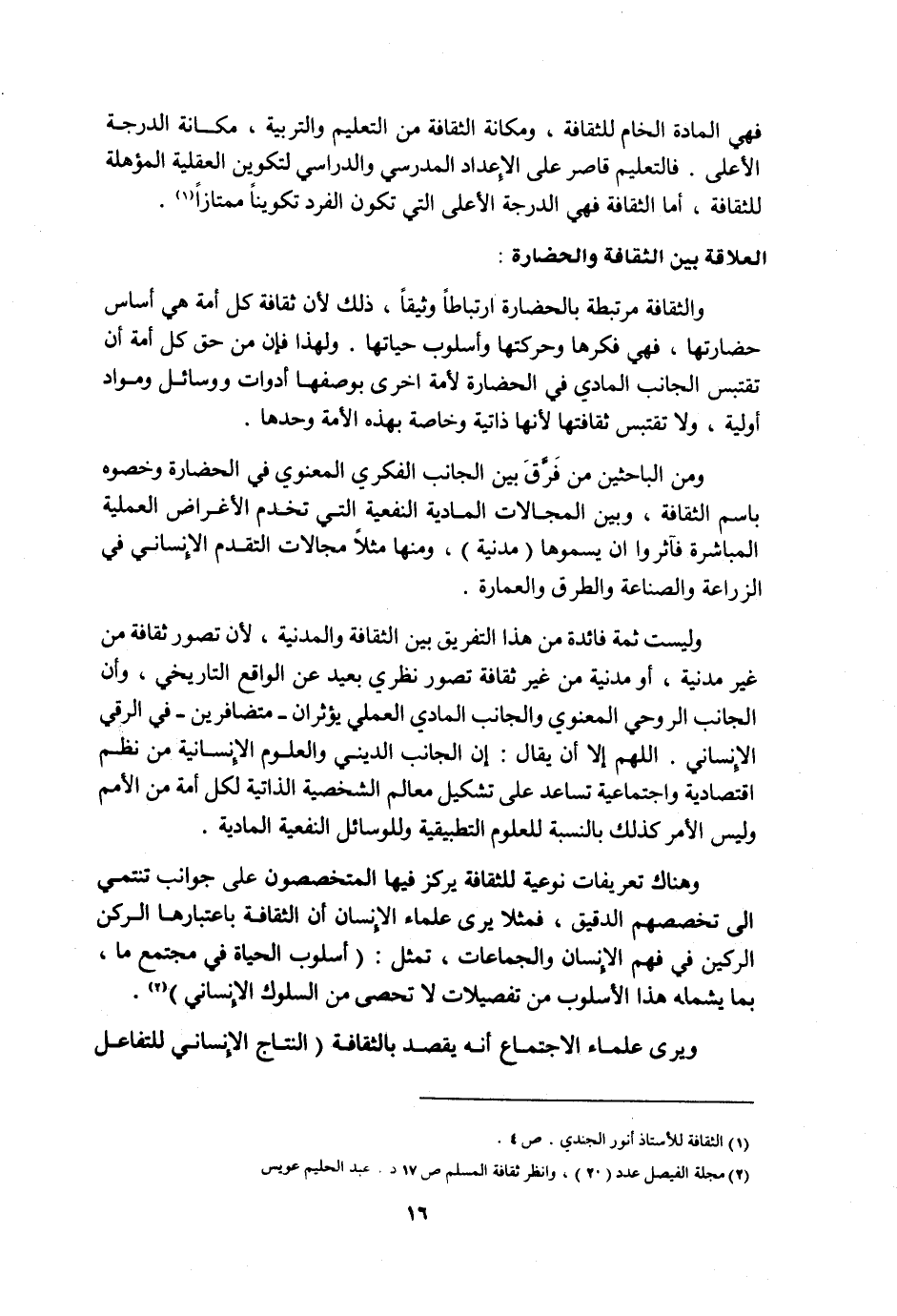 1 الثقافة للأستاذ أنور الجندي. ص 4.
