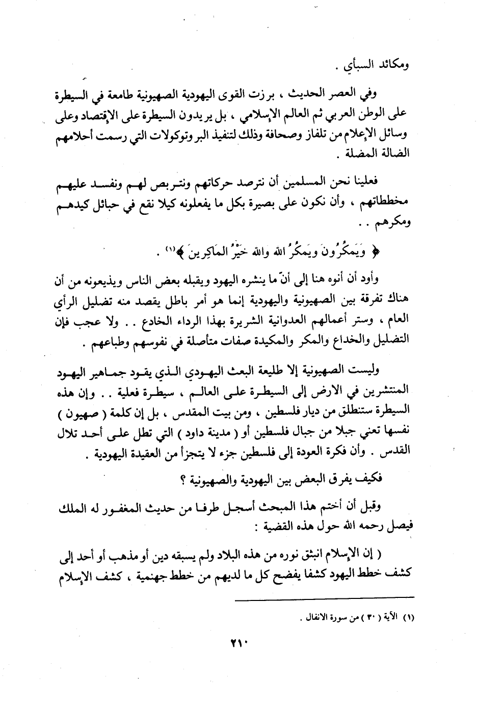 "إن الإسلام انبثق نوره من هذه البلاد ولم يسبقه دين أو مذهب أو أحد إلى كشف خطط اليهود كشفًا يفضح كل ما لديهم من خطط جهنمية، كشف الإسلام