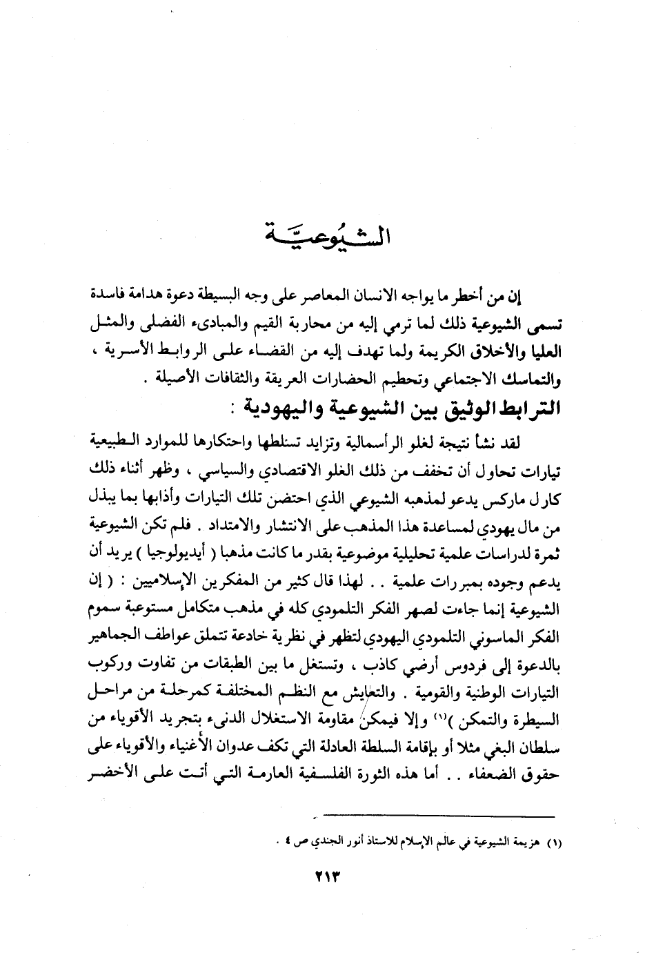 إن من أخطر ما يواجه الإنسان المعاصر على وجه البسيطة دعوة هدامة فاسدة تسمى الشيوعية ذلك لما ترمي إليه من محاربة القيم والمبادئ الفضلى والمثل العليا والأخلاق الكريمة ولما تهدف إليه من القضاء على الروابط الأسرية، والتماسك الاجتماعي وتحطيم الحضارات العريقة والثقافات الأصيلة.