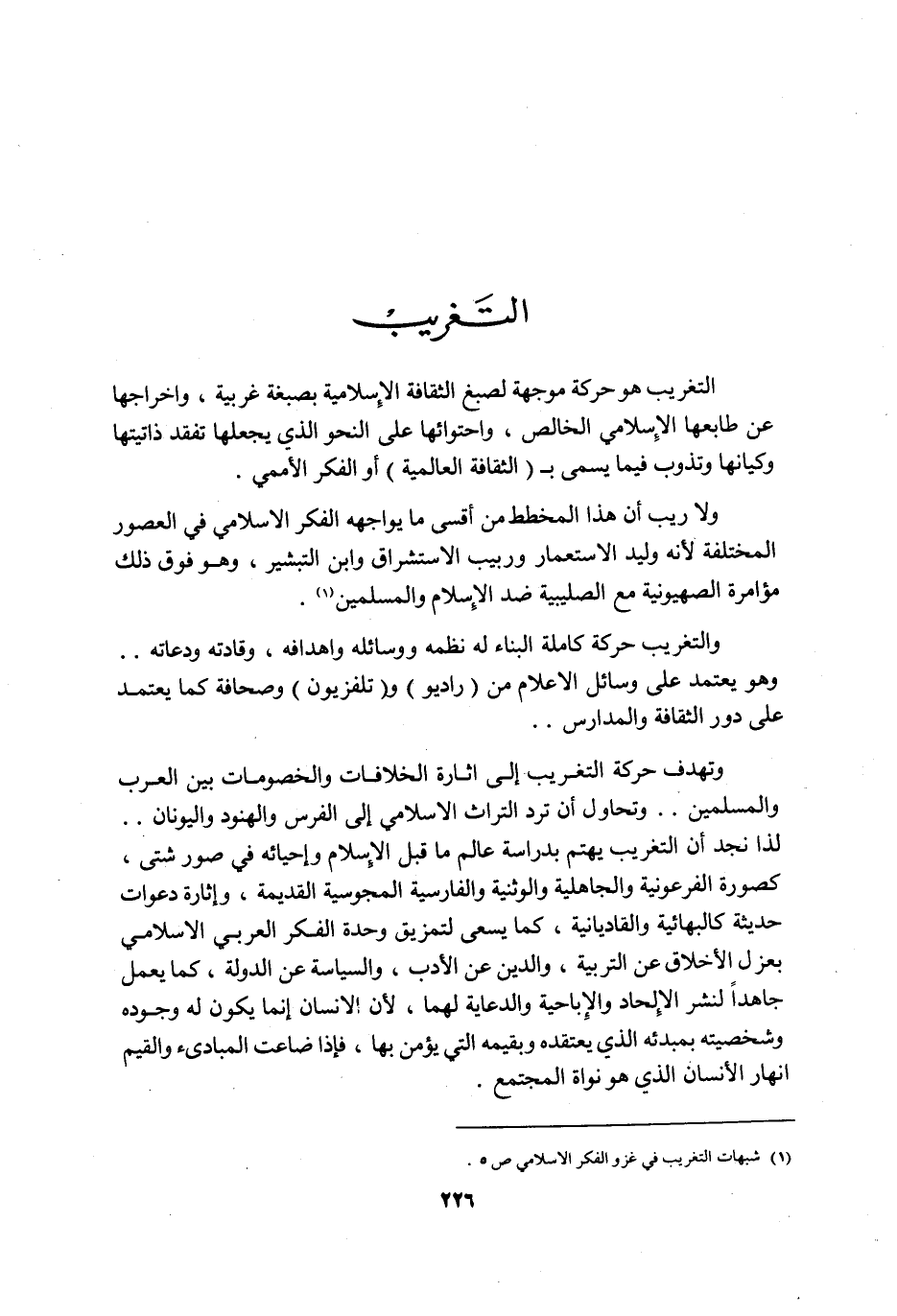 1 شبهات التغريب في غزو الفكر الإسلامي: ص5.