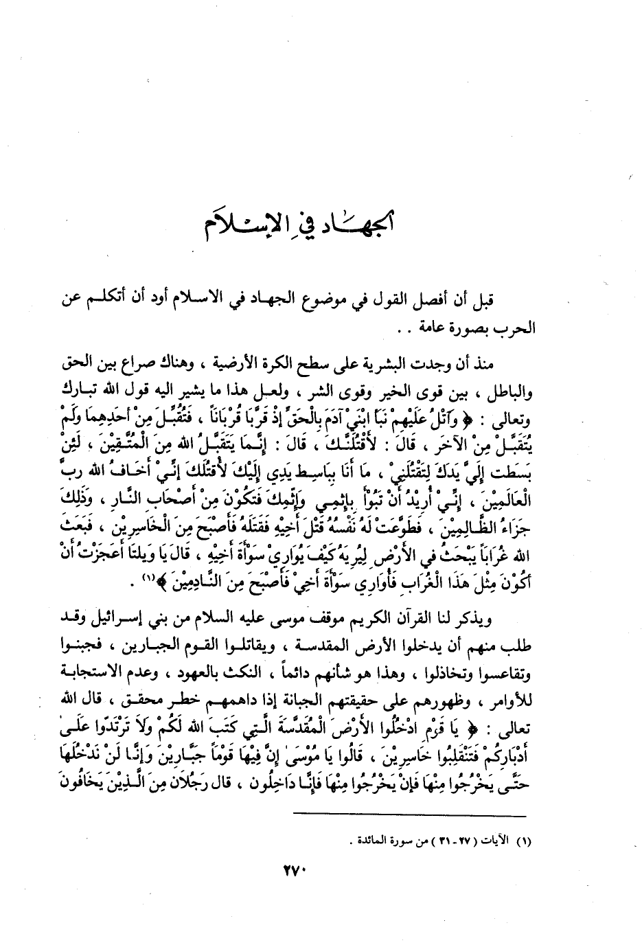 قبل أن أفصل القول في موضوع الجهاد في الإسلام أود أن أتكلم عن الحرب بصورة عامة..