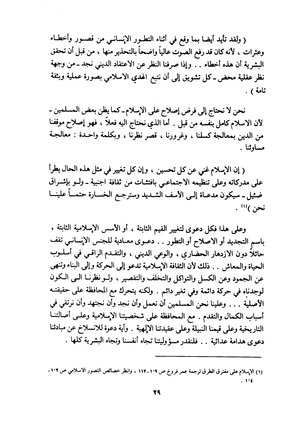 1 الإسلام على مفترق الطرق ترجمة عمر فروخ ص109-112، وانظر خصائص التصور الإسلامي ص 102-104.