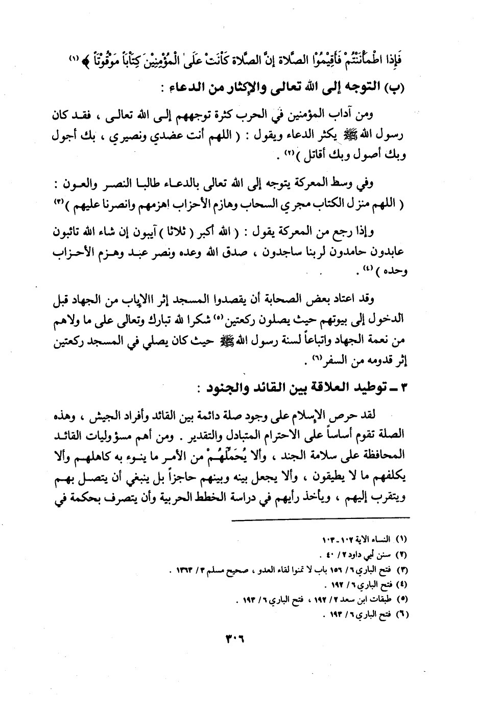 ومن آداب المؤمنين في الحرب كثرة توجههم إلى الله تعالى، فقد كان رسول الله -صلى الله عليه وسلم- يكثر الدعاء ويقول: "اللهم أنت عضدي ونصيري، بك أجول وبك أصول وبك أقاتل" 2.