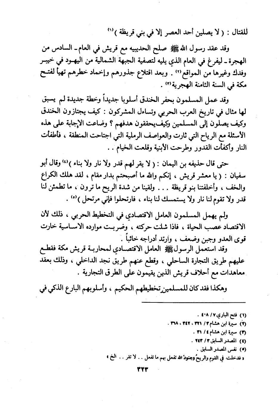 وقد استعمل الرسول -صلى الله عليه وسلم- العامل الاقتصادي لمحاربة قريش مكة فقطع عليهم طريق التجارة الساحلي، وقطع عنهم طريق نجد الداخلي، وذلك بعقد معاهدات مع أحلاف قريش الذين يقيمون على الطرق التجارية.