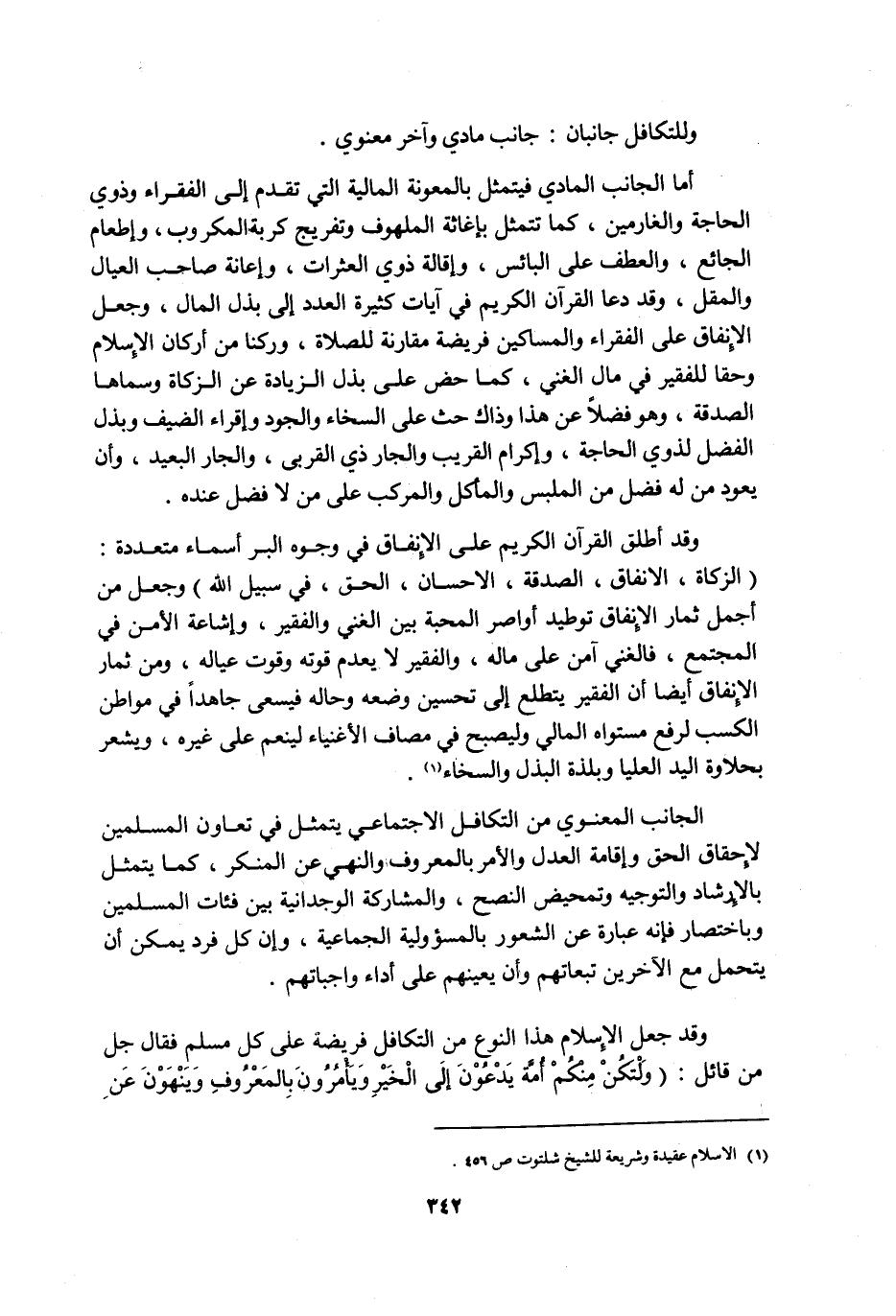 وقد جعل الإسلام هذا النوع من التكافل فريضة على كل مسلم فقال جل من قائل: {وَلْتَكُنْ مِنْكُمْ أُمَّةٌ يَدْعُونَ إِلَى الْخَيْرِ وَيَأْمُرُونَ بِالْمَعْرُوفِ وَيَنْهَوْنَ عَنِ