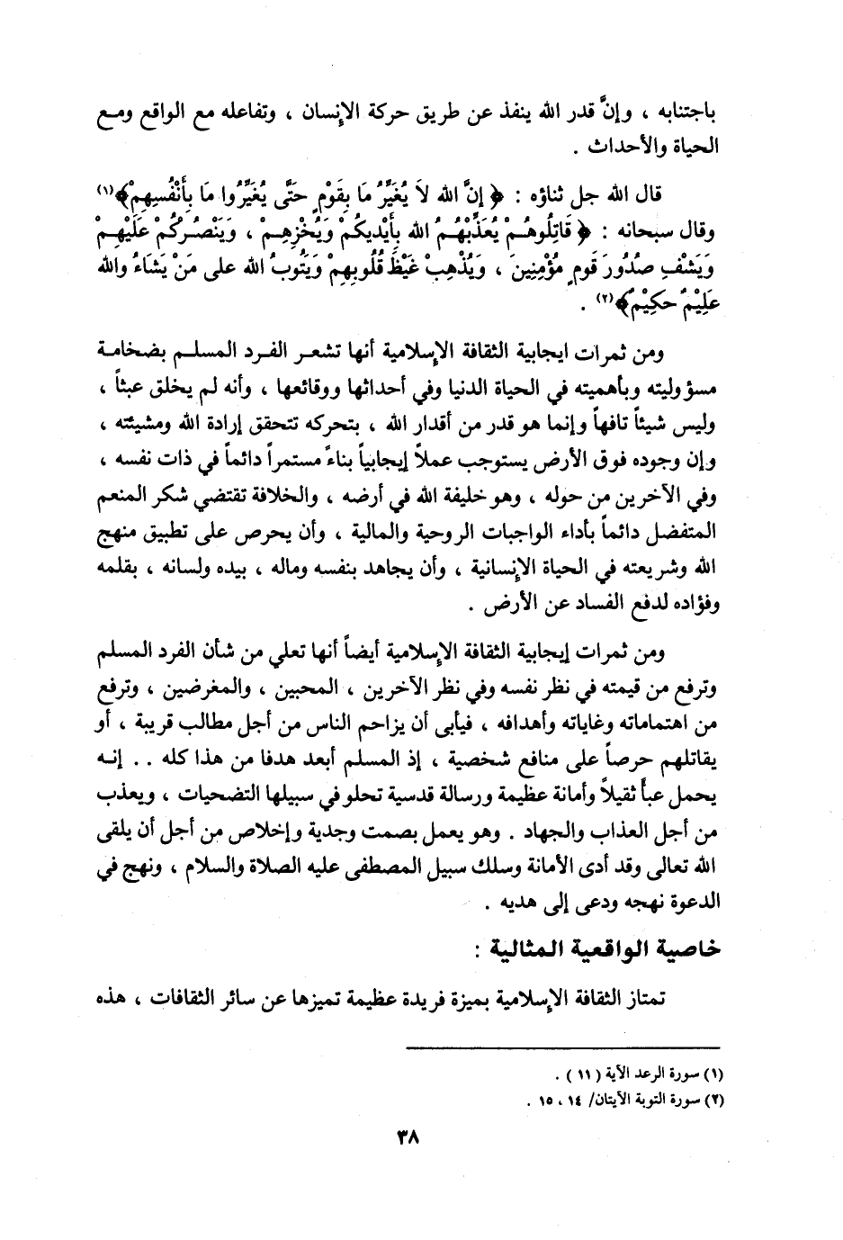 قال الله جل ثناؤه: {إِنَّ اللَّهَ لا يُغَيِّرُ مَا بِقَوْمٍ حَتَّى يُغَيِّرُوا مَا بِأَنْفُسِهِمْ} 1 , وقال سبحانه: {قَاتِلُوهُمْ يُعَذِّبْهُمُ اللَّهُ بِأَيْدِيكُمْ وَيُخْزِهِمْ وَيَنْصُرْكُمْ عَلَيْهِمْ وَيَشْفِ صُدُورَ قَوْمٍ مُؤْمِنِينَ، وَيُذْهِبْ غَيْظَ قُلُوبِهِمْ وَيَتُوبُ اللَّهُ عَلَى مَنْ يَشَاءُ وَاللَّهُ عَلِيمٌ حَكِيمٌ} 2.