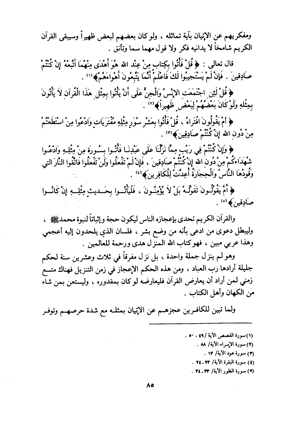 {أَمْ يَقُولُونَ تَقَوَّلَهُ بَلْ لا يُؤْمِنُونَ، فَلْيَأْتُوا بِحَدِيثٍ مِثْلِهِ إِنْ كَانُوا صَادِقِينَ} 5.