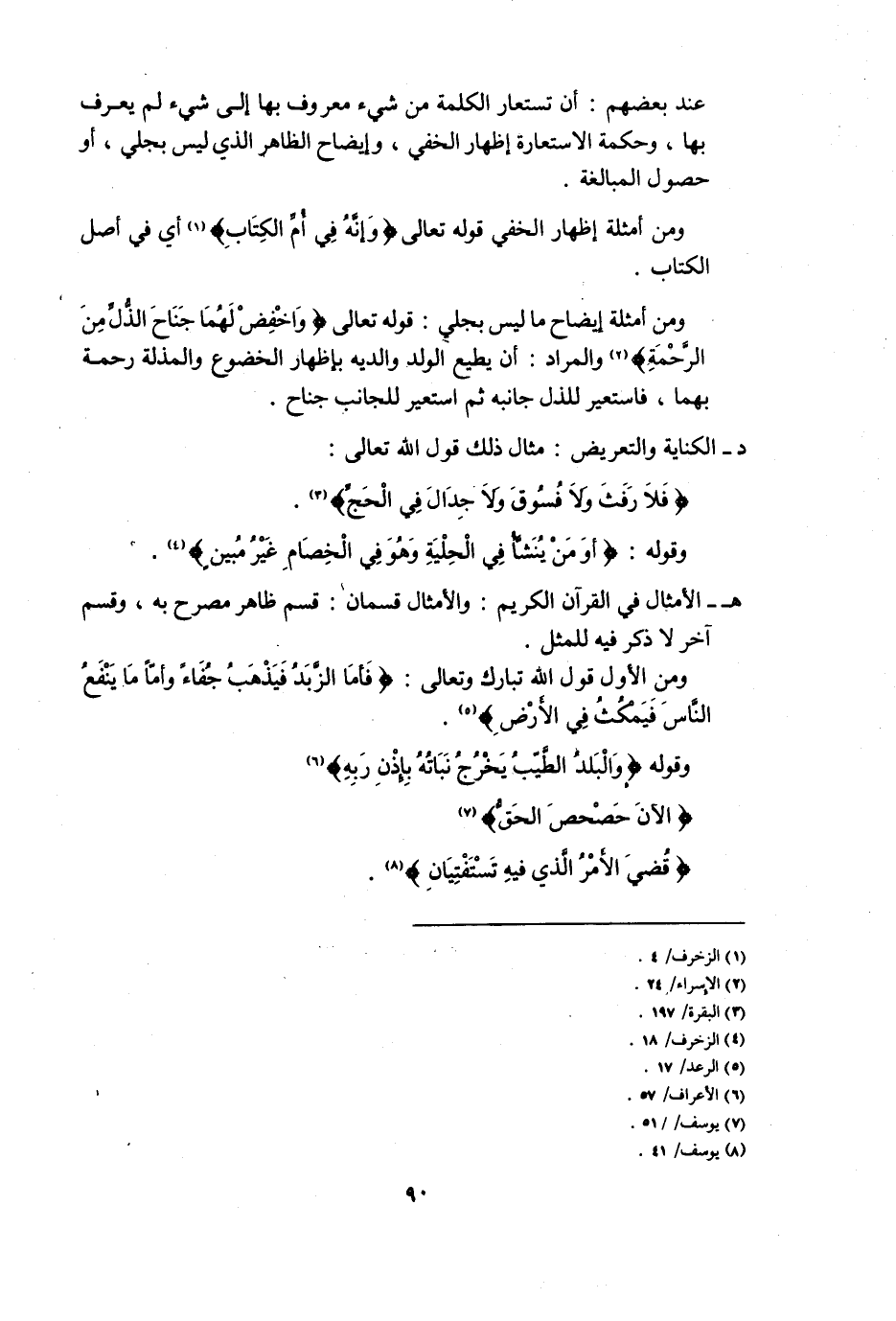 د- الكناية والتعريض: مثال ذلك قول الله تعالى: