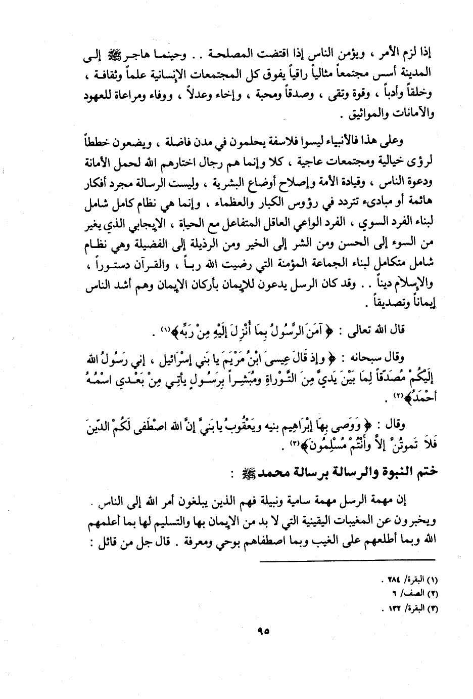 وقال: {وَوَصَّى بِهَا إِبْرَاهِيمُ بَنِيهِ وَيَعْقُوبُ يَا بَنِيَّ إِنَّ اللَّهَ اصْطَفَى لَكُمُ الدِّينَ فَلا تَمُوتُنَّ إِلَّا وَأَنْتُمْ مُسْلِمُونَ} 3.
