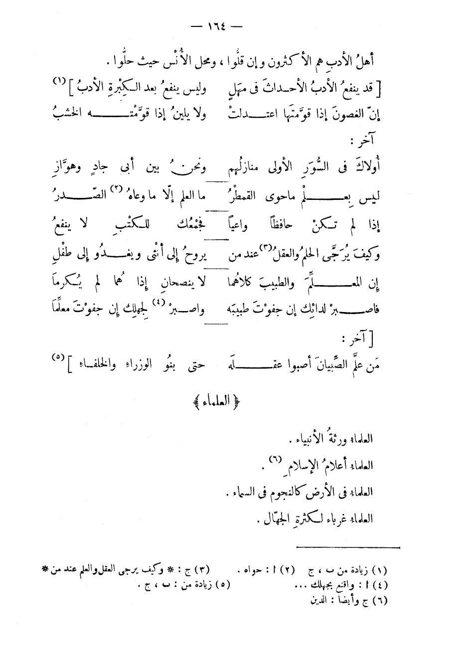 العلماء ورثة الأنبياء. العلماء أعلام الإسلام. العلماء في الأرض كالنجوم في السماء. العلماء غرباء لكثرة الجهال.