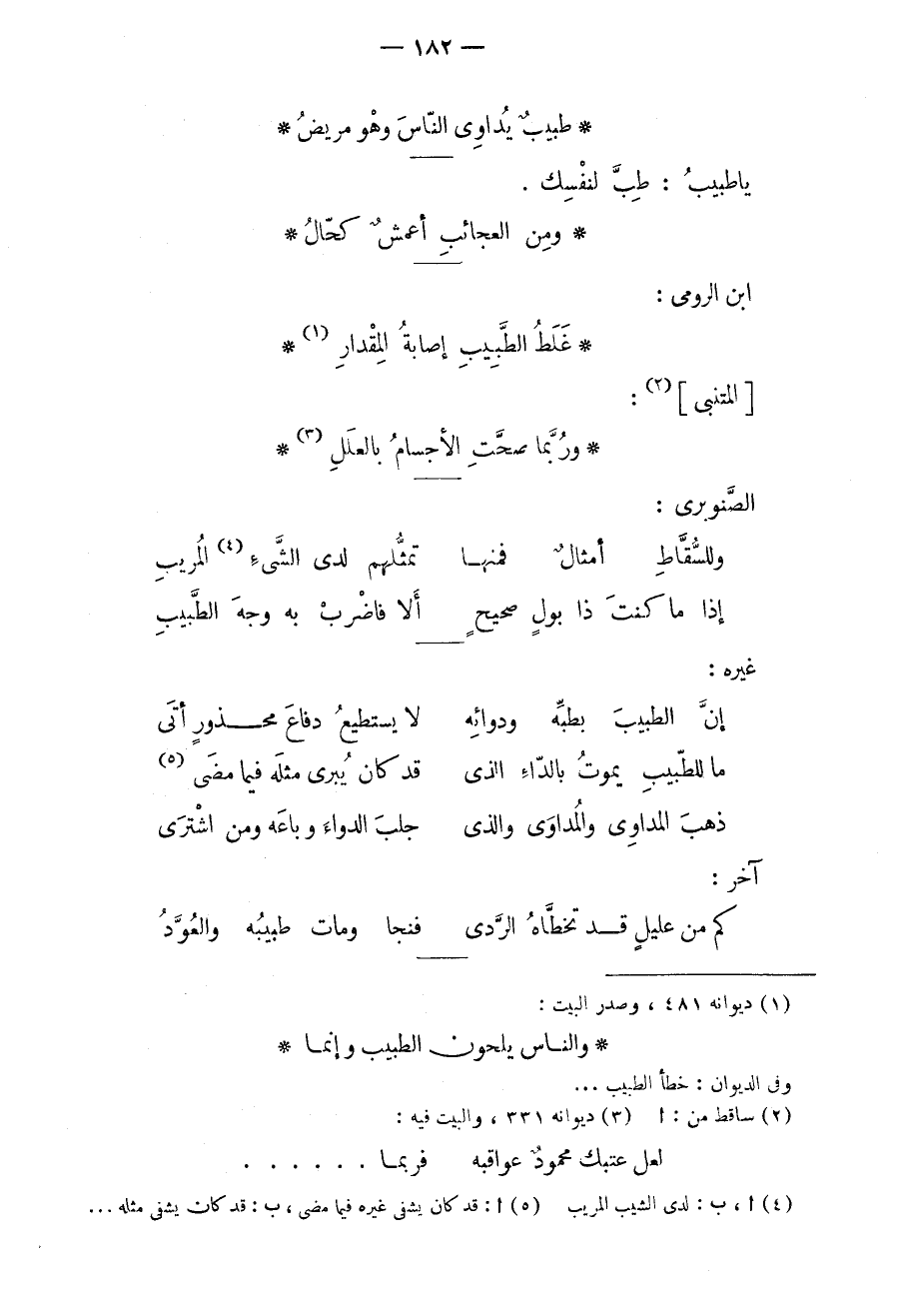إذا ما كنت ذا بولٍ صحيحٍ ... ألا فاضرب به وجه الطبيب