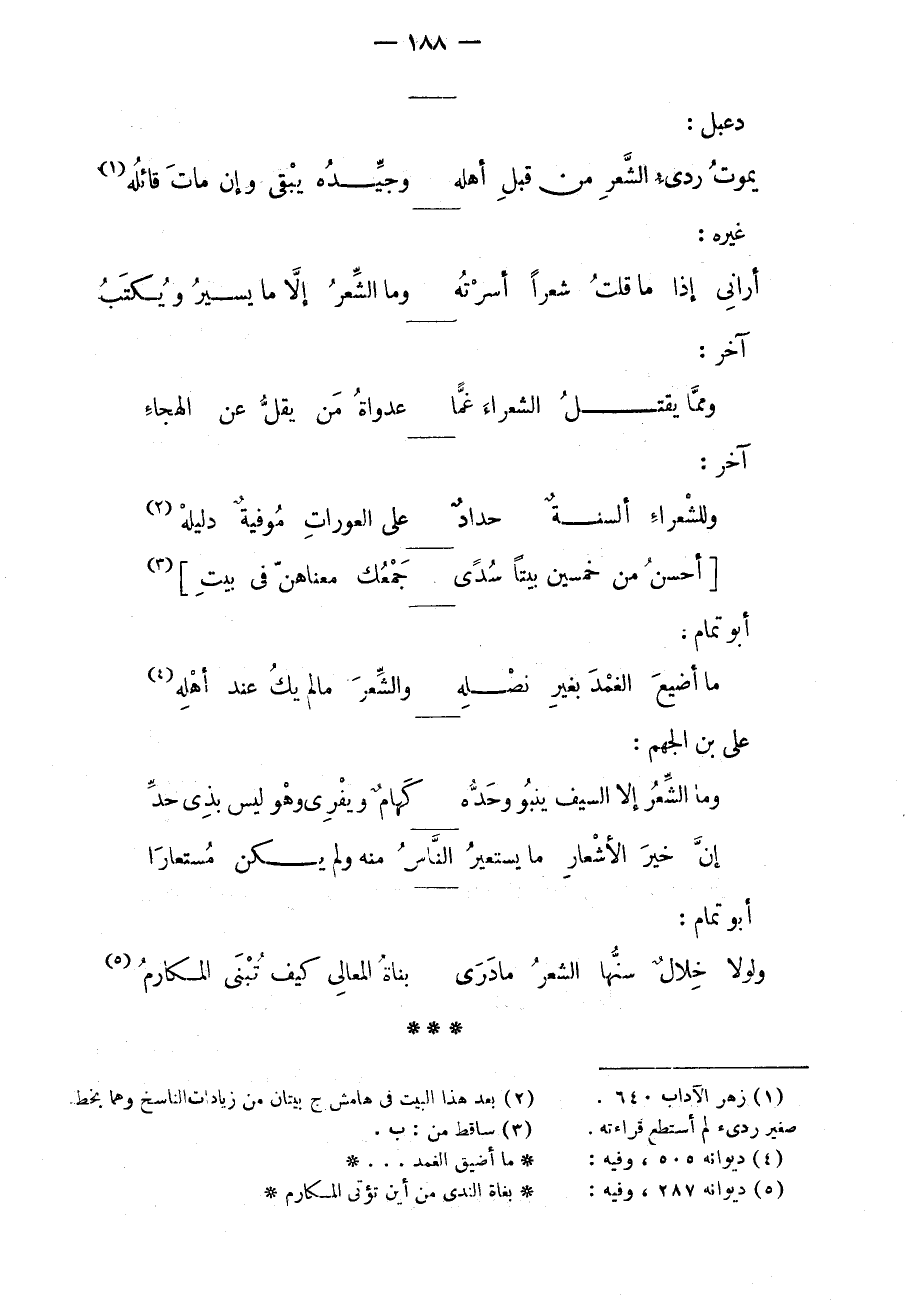 يموت رديء الشّعر من قبل أهله ... وجيّده يبقى وإن مات قائله