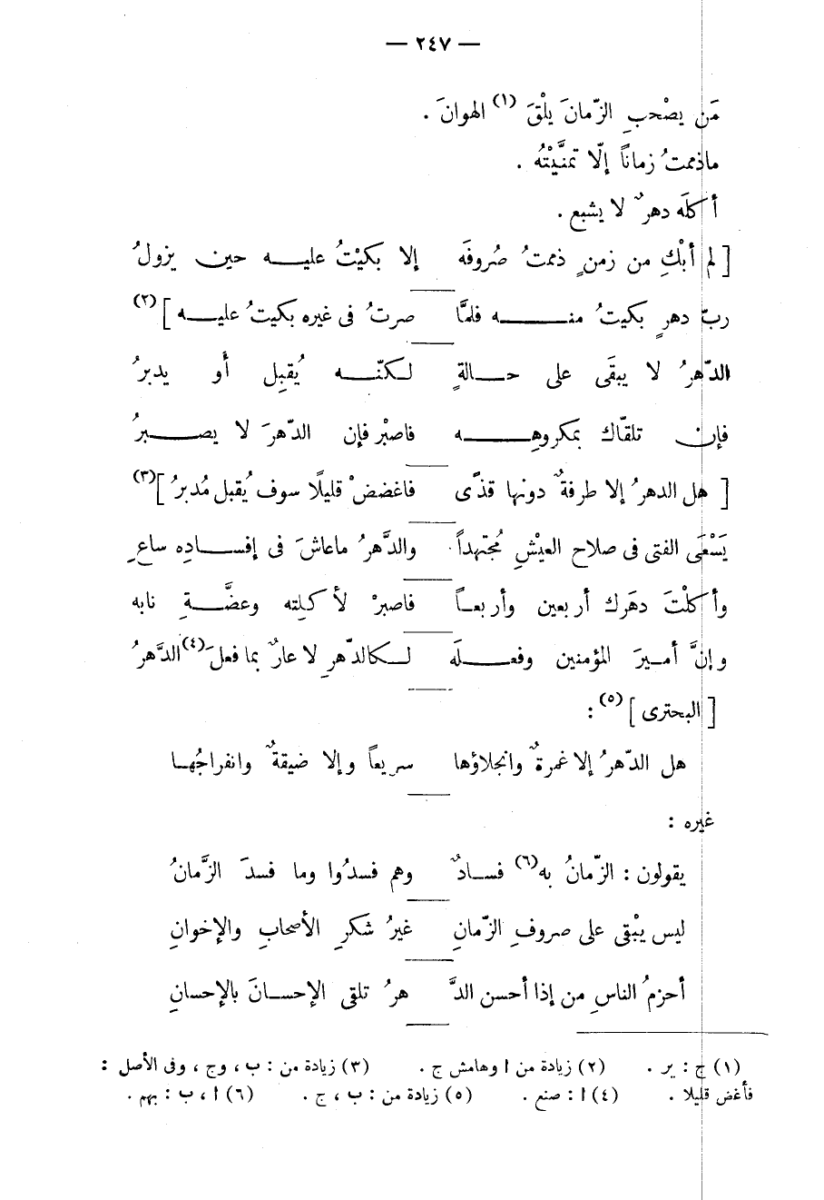 من يصحب الزمان يلق الهوان. ما ذممت زماناً إلا تمنيته. أكله دهرٌ لا يشبع.