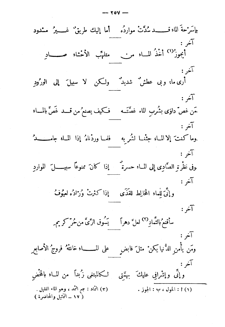 وما كنت إلاّ الماء جئنا لشربه ... فلما وردناه إذا الماء جامد