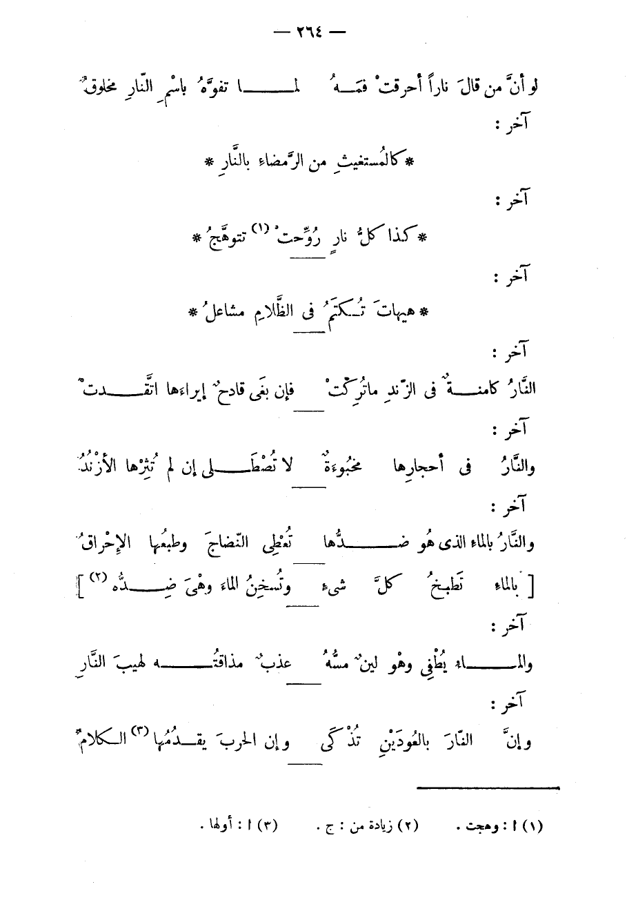 والنّار بالماء الذي هو ضدّها ... تعطي النّضاج وطبعها الإحراق