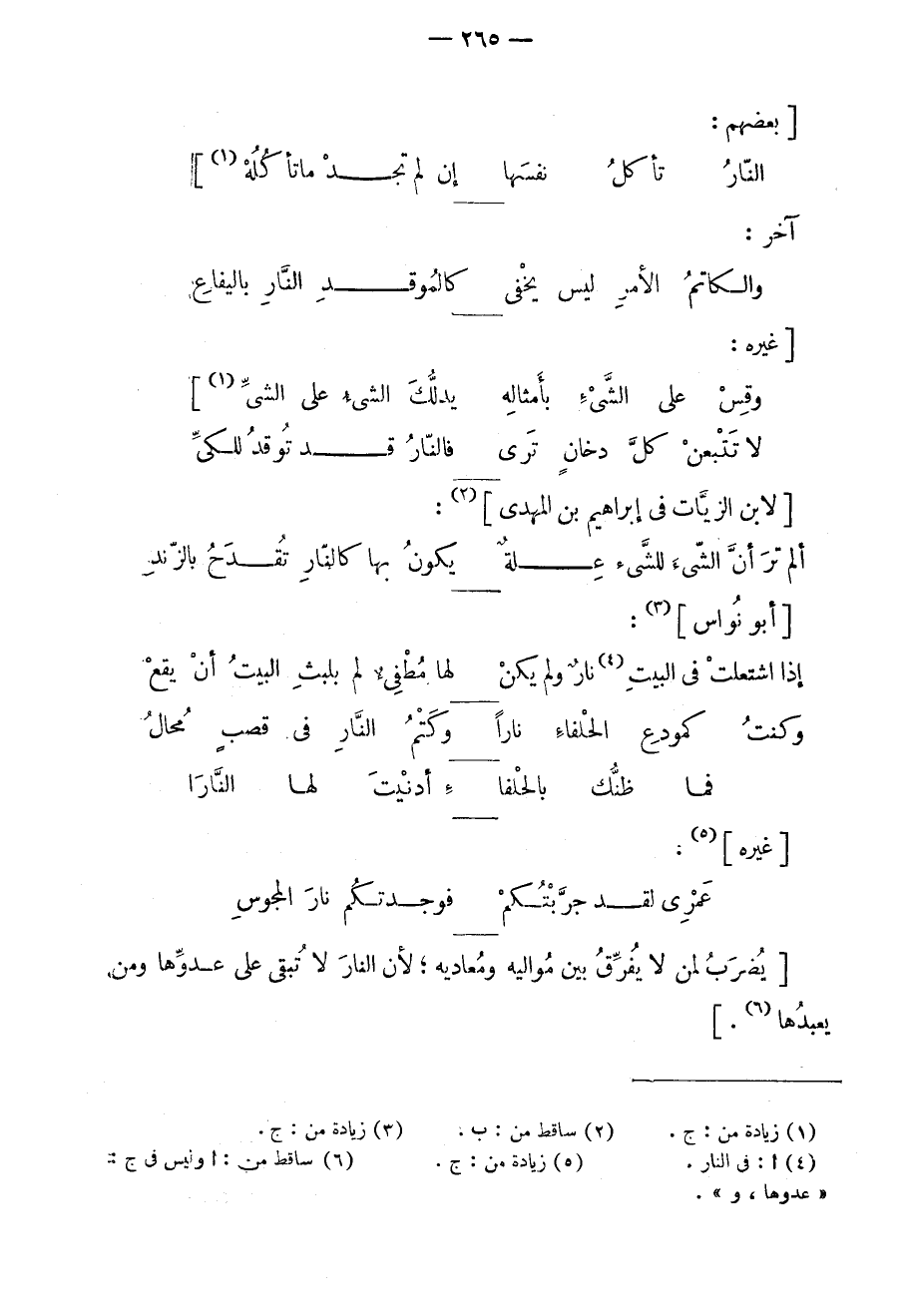 ألم تر أنّ الشّيء للشّيء علةٌ ... يكون بها كالنّار تقدح بالزّند